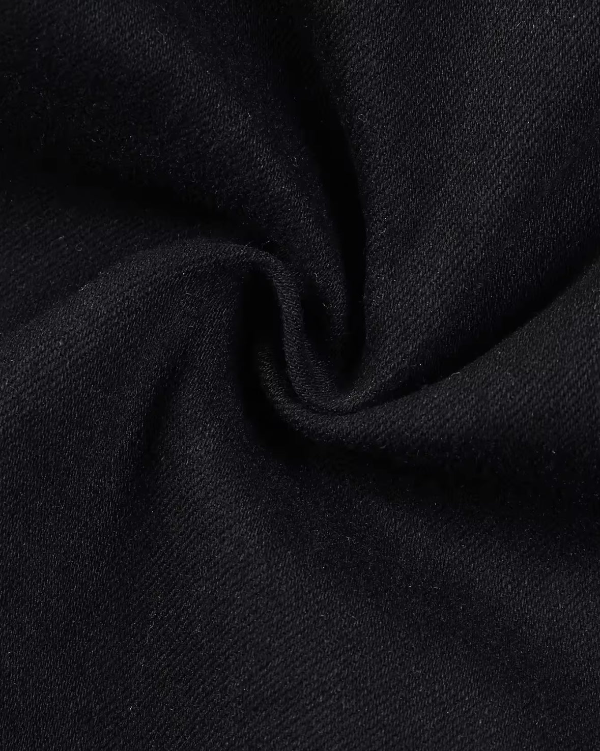 Unique spiral stitching and frayed details that create an eye-catching layered distressing for a raw, rugged aesthetic.