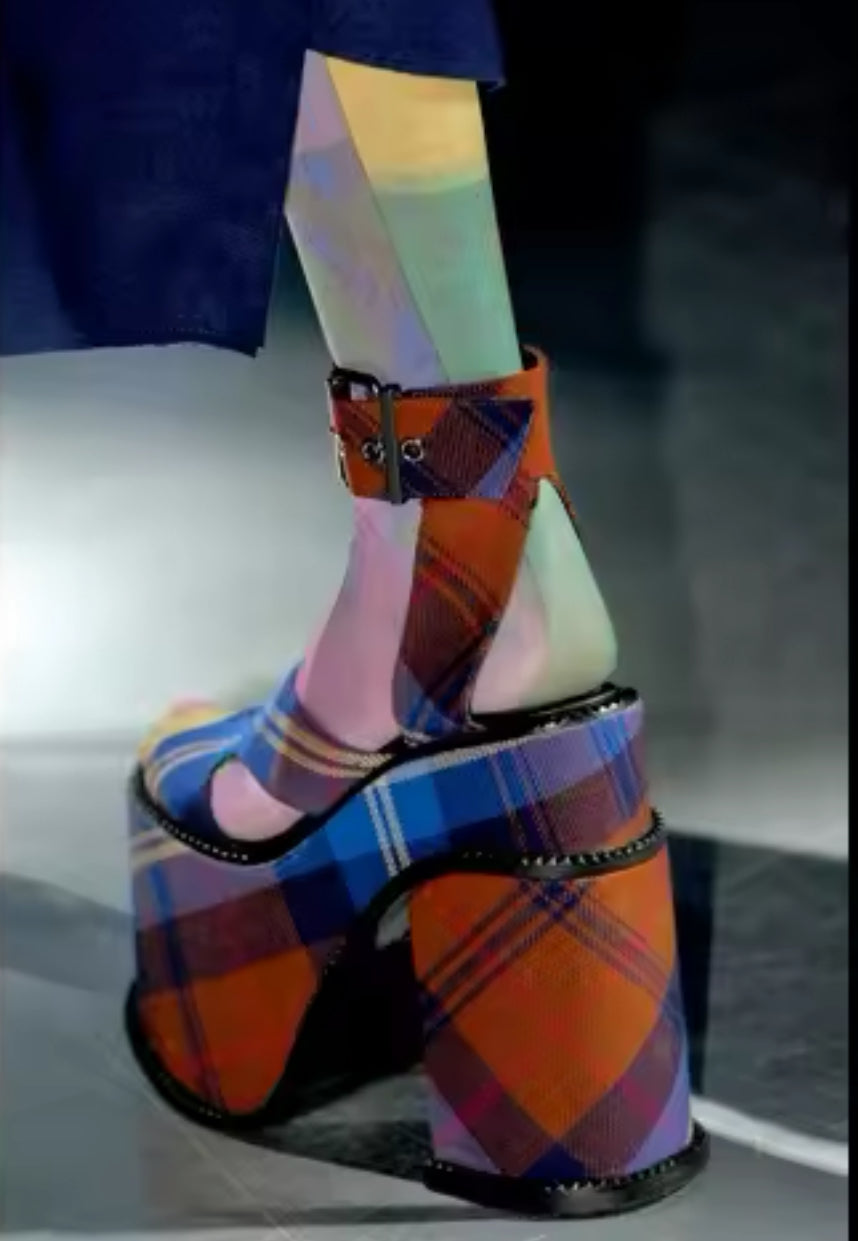 Tartan Plaid Platform Chunky Heel Sandals - Multicolor Designer Runway Shoes with Ankle Strap